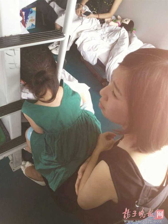 原标题:急死人了! 女娃头卡卧铺扶梯里