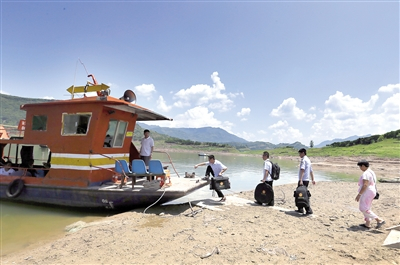 | 法官乘坐机动船前往河中小岛开庭。 |
