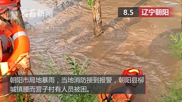 辽宁省朝阳市局部地区8月5日遭遇暴雨侵袭,当天下午17时许,朝阳县消防中队接到指挥中心调度称:位于朝阳县柳城镇腰而营子村有人员被困。接到报警后,该中队长赵然立即带领5名战士乘坐1台救援车,于10分钟后赶到现场。