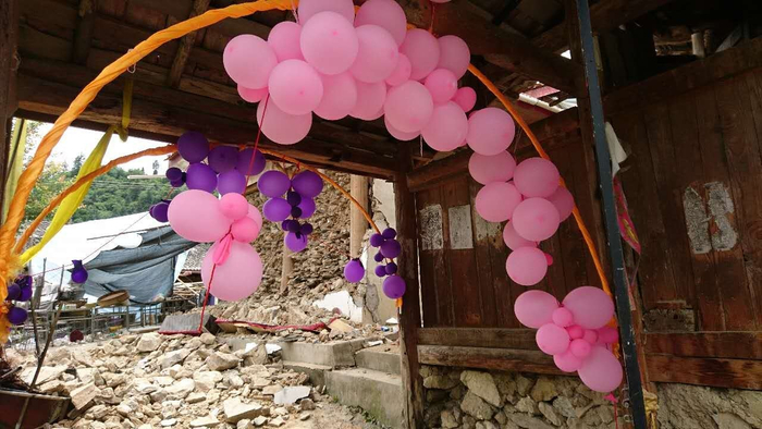 不料,8月8日,婚礼晚宴即将结束时,四川九寨沟县发生7级地震。距离震中不足10公里的上四寨村,大量房屋的房顶坠落、墙体倒塌。