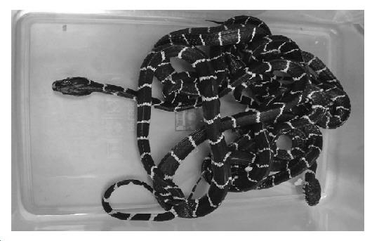 据了解,8月9日,厦门海关关员在对进境邮件进行技术查验时,发现一件申报为方便面而包裹异常的物品。将包裹开拆后,关员发现里面为4桶方便面,但4块面饼却放在包装盒外。更令人疑惑的是,这些方便面盒外的透明薄膜已被剥除,盒上戳有数个小孔,用手拿起来能明显感觉到里面有活物蠕动。为谨慎起见,现场检验关员对其再次进行技术检查,判断盒内活物极有可能是活蛇。随后,在林业部门的协助下,关员在4桶方便面盒里捕获4条黑色银环大蛇。