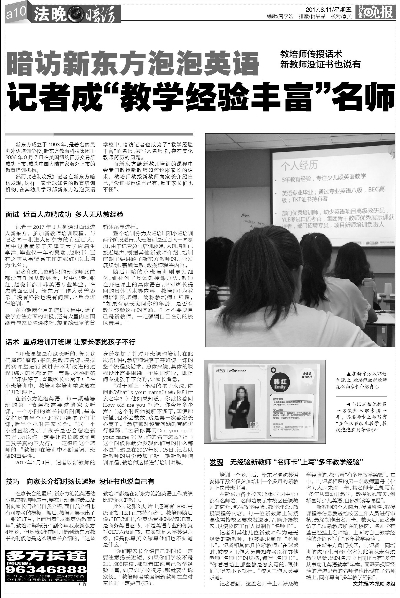▲8月11日本报报道《暗访新东方泡泡英语,记者成“经验丰富名师”》 |
