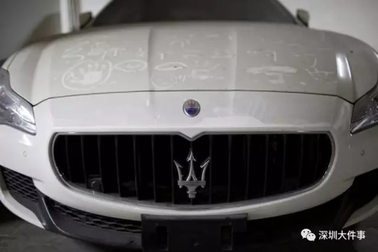 陈先生的玛莎拉蒂轿车成了涂鸦墙