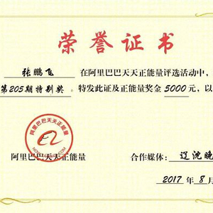 张鹏飞的善举不但感动了很多网友,也感动了辽沈晚报和阿里巴巴天天正能量评奖人员。经过推荐,阿里巴巴天天正能量与晚报联合为其颁发5000元天天正能量奖金。