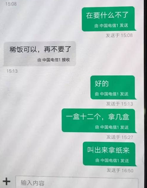 16时50分,丈夫给其发短信,叫通知护士出来拿纸,但未再回复