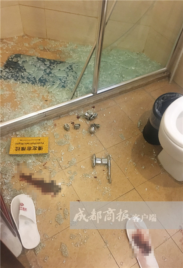 原标题:淋浴门碎裂致住客缝20多针,成都一酒店称设施正常只赔一万