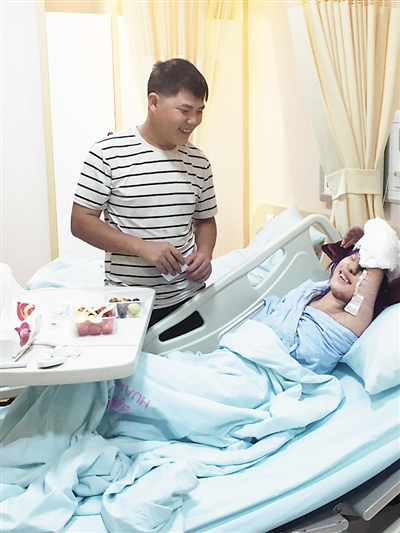 今年4月,徐琴琴开始在重庆华美整形美容医院接受全面治疗,每过15天要来医院注射一次生理盐水扩张手臂皮肤,从广安岳池到重庆,林洲强一直陪着她。