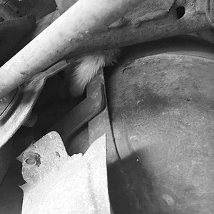 就这样两人经东快路,一路小心翼翼地来到了香炉礁附近的一家汽修厂。他们本以为把车吊起来就可以把小猫抱出来,然而待维修人员将车吊起来后发现,小猫的身体已经完全钻进了油箱附近的空隙中,只留一部分尾巴露在外面,小猫的尾巴一碰还能动,说明它还活着。