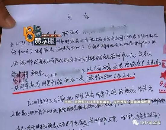 管老板说,他做这行30多年,凭经验就可以判断这块表不是正品,到底是通过哪些细节看出来的,记者再三追问,对方没有明说。那么,欠条上明明写着这块表是正品,而且有他的签字盖章,这个他又会怎么解释呢。