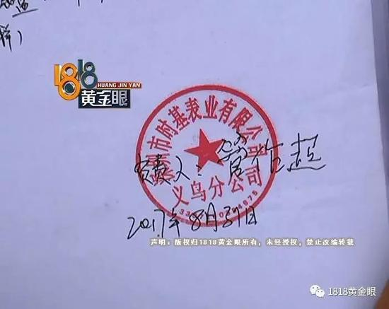 银泰百货义乌店名表维修中心 管老板:“它这个A货就是A货知道吗,你看他这个表,那个单子是他写的,就是让我们盖个章,我们想给他赔个一样的表,就完事了,我答应是9月20号之前把表搞来,这不就完事了呗(你当时承认它是正品?)没承认,(没承认为什么要签字盖章呢?)他要求的。”