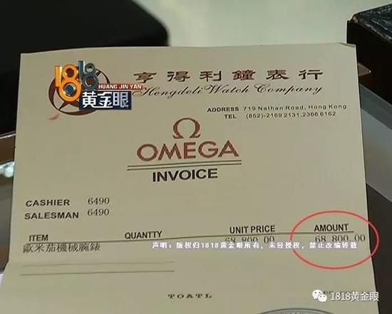 王先生说,他的这块欧米伽手表,是2016年在澳门亨得利钟表行买的,花了68800元,发票,证书全部都有。8月19号,他把手表拿到银泰百货义乌店里做保养,费用是3400。