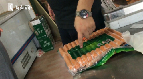 联谊农贸市场是城区最大的副食品集散地,记者决定从批发环节一探究竟。记者以烤肠批发的名义,来到这家“艳丽食品”店进货。老板推荐了一款“爆款”烤肠,18块钱一袋,52根,划下来3毛多钱一根。