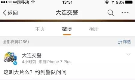 事发后,有网友将此事反映给了“@大连交警”。对此,大连交警官微回复称:“这叫大片吗?约到警队问问。”