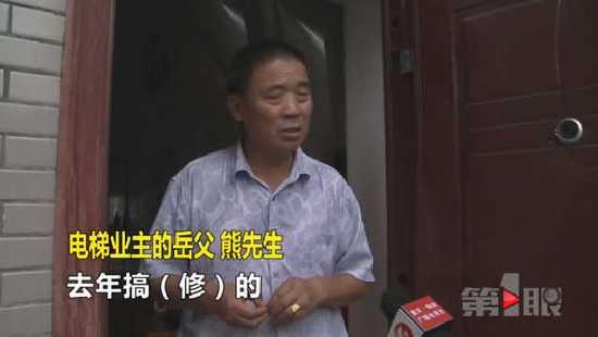 记者来到六楼,在门口等候了半个多小时,都没能见到这户的业主。在小区居民的带领下,记者找到了电梯业主的岳父熊先生。熊先生说,这栋楼房是还建房,总共有七楼,没有电梯。六楼和七楼是一套跃层,自己的女婿和女儿就住在里面。电梯是去年开始修建的,完工已有数月。说起修电梯的目的,熊先生说主要是女婿嫌爬楼梯太累。