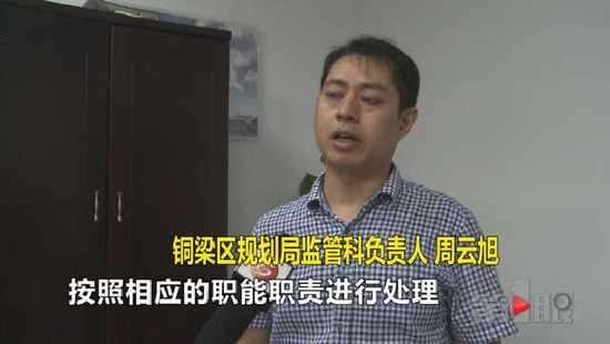 铜梁区规划局监管科负责人表示,下一步他们将到现场了解情况,并按照有关规定进行处理。