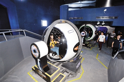 | ◀游客正在TOPS内体验各项高科技的游乐设施。 |