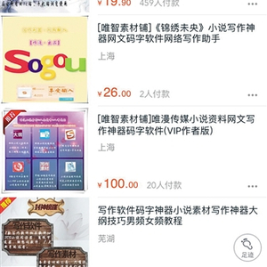 昨日,新京报记者在淘宝搜索“写作软件”,立即出现了数十家店铺,有些还冠上“《锦绣未央》小说写作神器”的介绍词。这些写作软件价格从十几元到上百元不等。