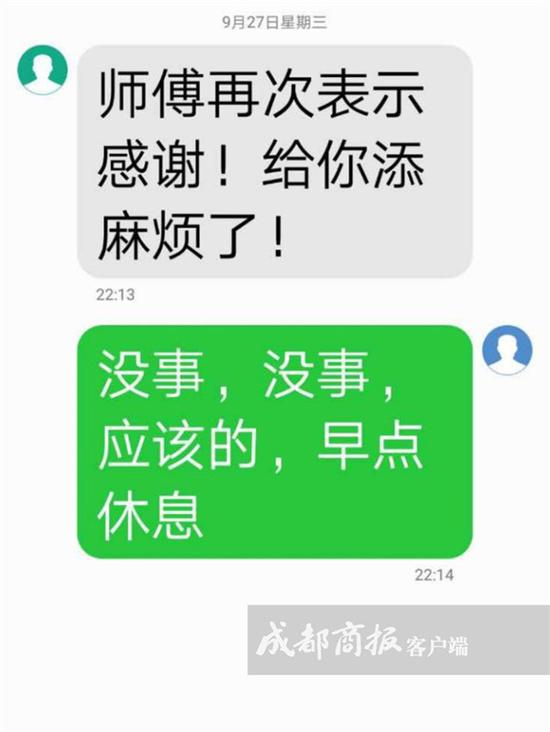 王女士告诉记者,非常感谢司机帮忙照顾并找到孩子。10点13分,王女士给调度室工作人员发去致谢短信,而对方则回复“没事,没事,应该的,早点休息”。