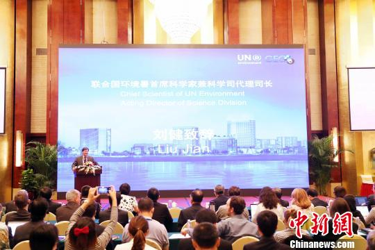 联合国环境规划署首席科学家兼科学司代理司长刘健致辞。南方国合中心供图