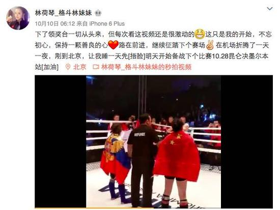 能成为MMA世锦赛历史上首位女子金牌我很激动,能为祖国做出小小小的贡献是我最大的心愿,也感谢大家对我的鼓励和支持,谢谢你们