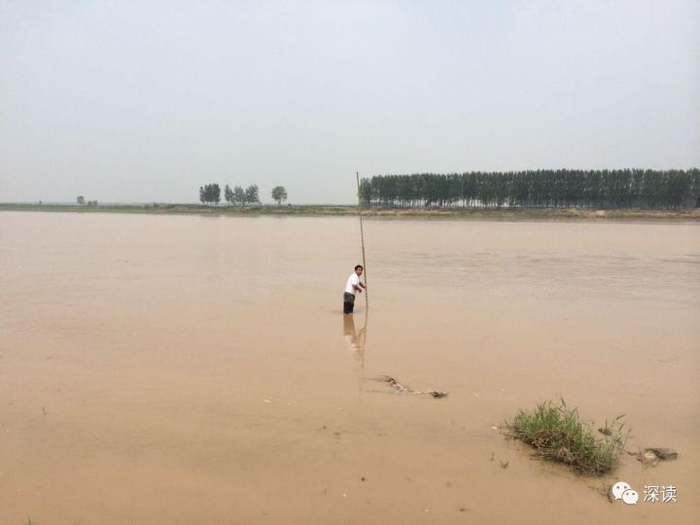 今年夏天,山东青年政治学院的大学生来做社会实践,我以身试水给他们做了一实验。刚进河里第一步,水刚没过脚踝,但是紧接着第二步,河水深度就达到了两米九。同时,因为黄河的曲延,有很多地方形成了旋涡,一旦进入漩涡的范围,后果不堪设想。