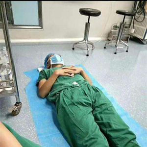 原标题:骨伤科医生连续工作23小时累倒躺地休息,网友:让人心疼