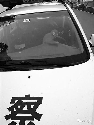 进了警车,顽猴也是上蹿下跳,一会摸摸方向盘一会儿跳上座椅靠背。