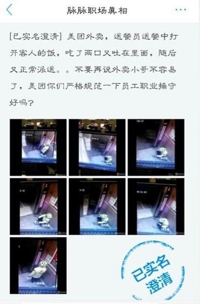 帖子一出,舆论哗然。众网友纷纷谴责外卖小哥没有公德心。“这小子是有多饿,你不知道电梯都有监控吗?”也有网友将矛头指向整个外卖行业的机制和职业道德。“试想,作为一个新兴行业,如果从业者缺乏职业素养,行业缺少监控监管,那它能健康么?能对消费者负责么?”