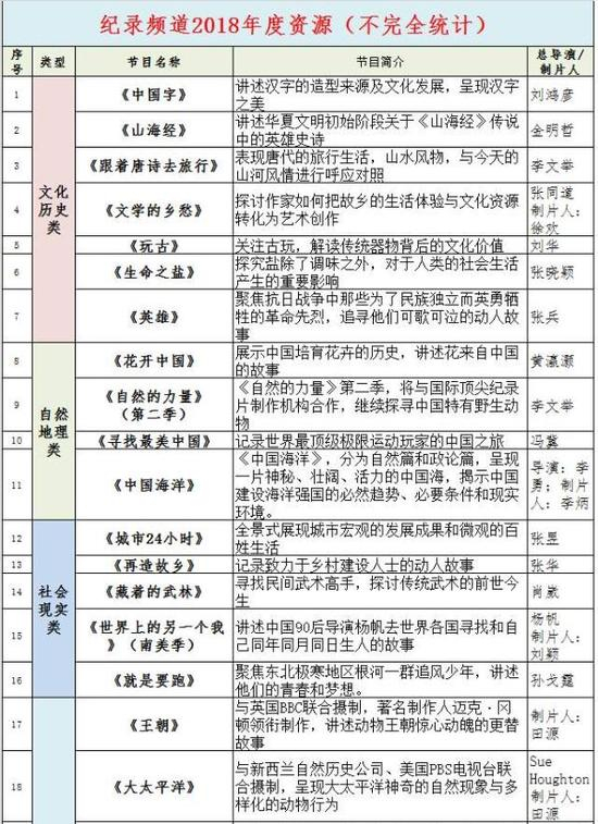 据介绍,2018年,《如果国宝会说话》、《航拍中国》第二季、《舌尖上的中国》第三季将率先在纪录频道推出。