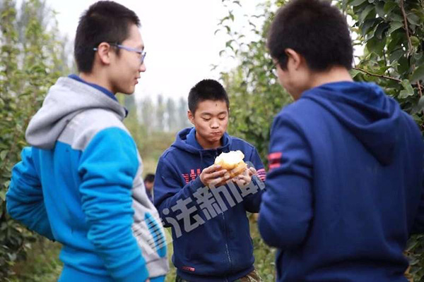 2010年,李老师为了培养孩子们习劳勤奋的精神,特地在外省引进了1万株梨树苗,准备开辟种植一片100亩的梨园。“最开始的时候大家面对的是一片荒地,种植坑要挖一米长宽一米深,四五个人一起挖也要一小时才能挖好一个坑”。就这样,40多个孩子和20多位老师从入冬前开始忙一直到开春,他们用铁锹、锄头,在课余时间完成了这项重任,历时4个月。“当时忙完的那天,别提多开心了,看着自己种了这么一大片梨树,真的是满满的成就感。”一位当时参加了种植的老师告诉法制晚报·看法新闻记者,“哪成想这才刚刚开始,我们每年还要面临着除虫、拔草、浇水……各种各样的难题。”