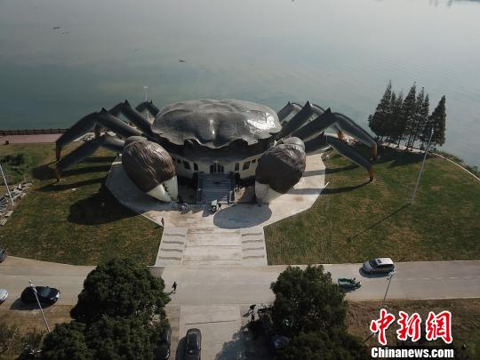 江苏巴城东阳澄湖东岸现巨型“大闸蟹”。 黄莹 摄