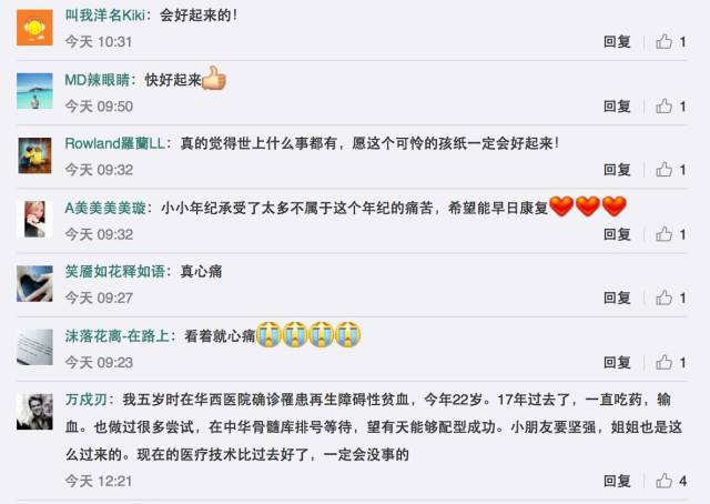 鲍鲍的事情让知道的网友无不为其担忧心痛,广大网友也纷纷评论留言向小鲍鲍送去祝福,希望他能早日战胜病魔,重拾儿童应有的快乐。