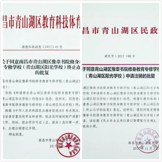 因为疑似体罚、非法拘禁、以及性侵而丑闻缠身的豫章书院终于要停办了。11月5日,南昌教体局和民政局的批复在网上流传,这家书院走到了尽头。