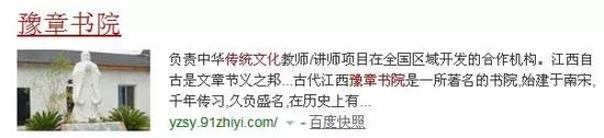 豫章书院的官网已经无法打开,但网页快照依然存在,能看到他们对自己的介绍是“负责中华传统文化教师/讲师项目在全国区域开发的合作机构”。
