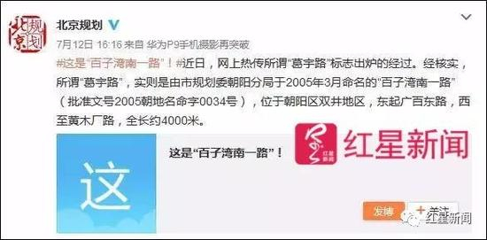 此事后来在网上发酵引发关注和争议,今年7月12日,北京市规划委员会官方微博通报了此事(见下图),市规划委工作人员当时在接受媒体采访时介绍说,市民不可以私自命名道路,应由专门的地名办公室负责道路取名。朝阳区市政市容委也在接受媒体采访时表示,个人不能随意制作并悬挂路牌。