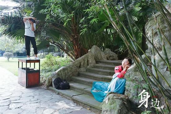 “头偏左一点,眼睛看我的手,对对对,就这样!”这个正在拍摄一组汉服照的摄影师女孩儿叫陈志敏,出生于1997年,今年21岁,来自山东临沂,目前就读于重庆市文理学院文秘专业,是一名大四学生。“看着我,把我当成前男友。”用生动的引导话语和缓缓的音乐把模特带入状态,将每一张照片都拍成一个故事是陈志敏的追求之一。