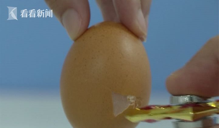 在记者调查走访过程中,指尖陀螺这款玩具在孩子们当中很是流行。受这么多孩子追捧的指尖陀螺,到底对孩子有没有危害呢?记者也做了个实验。将高速旋转的指尖陀螺靠近鸡蛋,鸡蛋外壳立即出现了裂缝,并产生明显凹陷,两三次后,完好的鸡蛋外壳就会被打破。