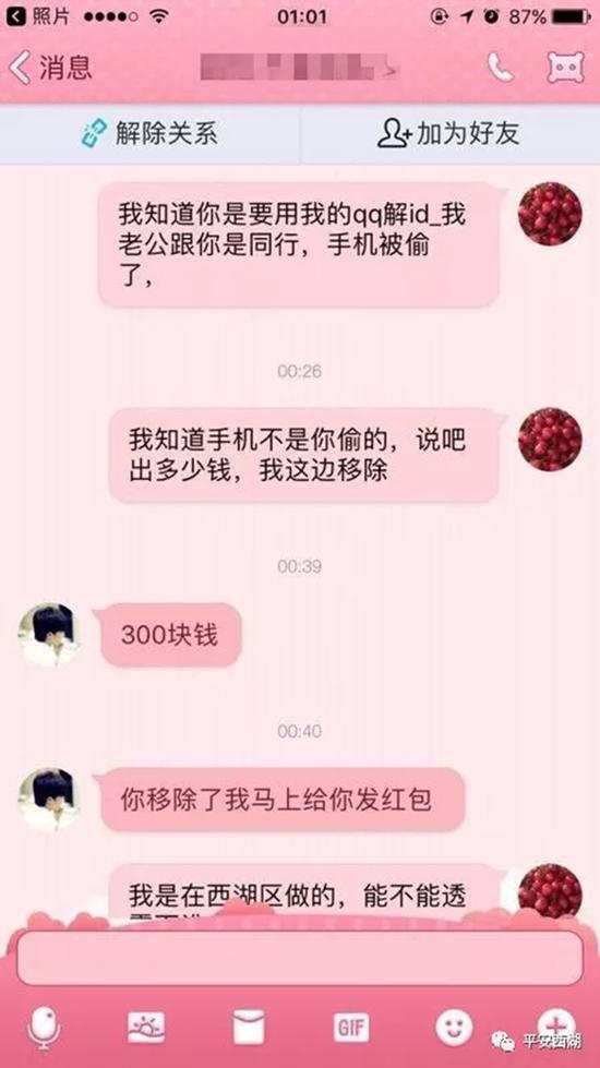 11月初,小杨对找回手机不再抱希望,注销了用QQ邮箱注册的Apple ID。几天后,有陌生人通过QQ联系他,称愿出300元买他的QQ号。