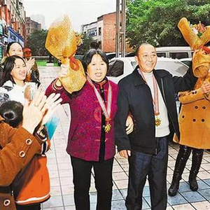 11月18日下午,荣获第六届全国道德模范的陈淑梅、李其云夫妇回到铜梁,受到父老乡亲们的热烈欢迎。熊明 图