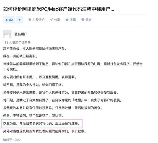 很快,虾米音乐App前员工八座在知乎上道歉了:“对不住各位,本人就是那位始作俑者程序员。今后我老老实实写代码,正正经经写注释”。