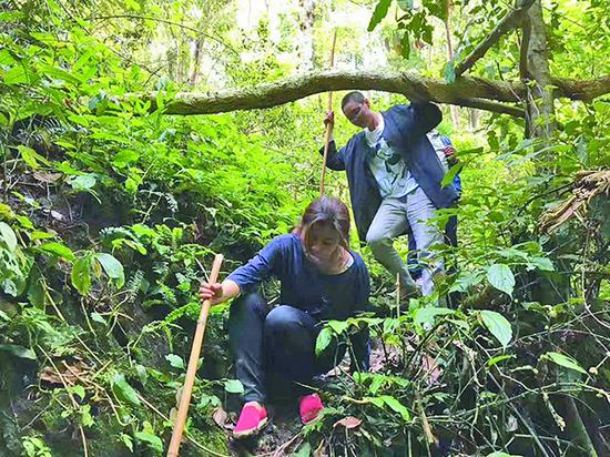 邵鹭说,采购野生古树茶,上山时要先开车,再坐茶农驾驶的摩托车,最后是步行。摩托车行驶在一米多宽的山边小路上,右侧一步之遥就是陡坡式的悬崖,很危险。步行穿越深山更难,在冰凉的山泉水里走到双腿冰凉、被树枝刮伤都是常事,有时还会被蚂蝗“偷袭”。