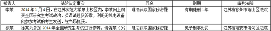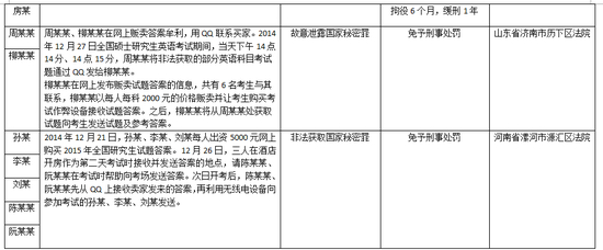 2014年度研究生考试期间,江苏、山西、陕西、黑龙江的法院审判了买卖、向考生传递真题答案的案件,以及监考老师利用职权向外界泄露考题的案件。