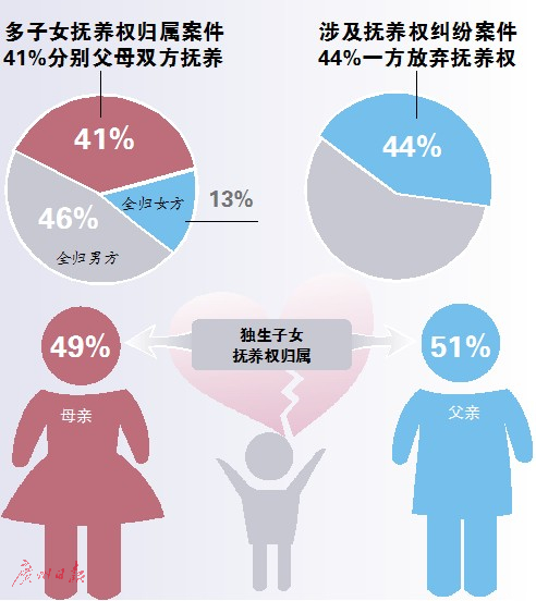 独生子女更多判给爹