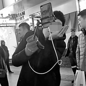 28日下午4点左右,在寒风凛冽的重庆路商圈内的一个十字路口,两女一男正冲着自拍杆上的相机摆手,直播男碰到了自己的粉丝,三人聊得火热,互动间忘却了室外零下的温度,其中一名女子掏出手机与“直播网红”合影留念,随后双方礼貌分别。