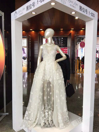 从80年代起,结婚穿婚纱慢慢普及,直到几年前,国内大部分新娘仍以租赁婚纱为主。但是,记者在本届婚博会上发现,定制婚纱机构占了展会礼服展商的一半多。这些婚纱除了传统复古拖尾外,还有近两年流行的抹胸、一字肩等款式,部分商家还带来了立体花卉、choker颈链、泡泡袖等新潮元素的婚纱。设计大胆的婚纱,不仅有采用短裙设计,上半身还设计成透视装的样式,穿起来更显性感。此外,除了传统的白色外,香槟色、浅蓝色的婚纱也能见到。