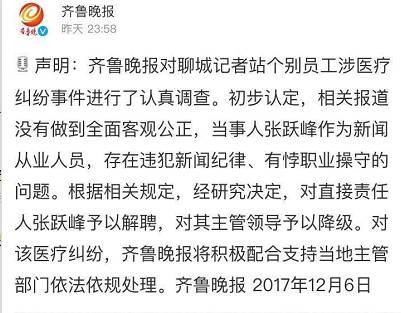 张某所供职的《齐鲁晚报》昨天深夜就发布了这样一份声明: