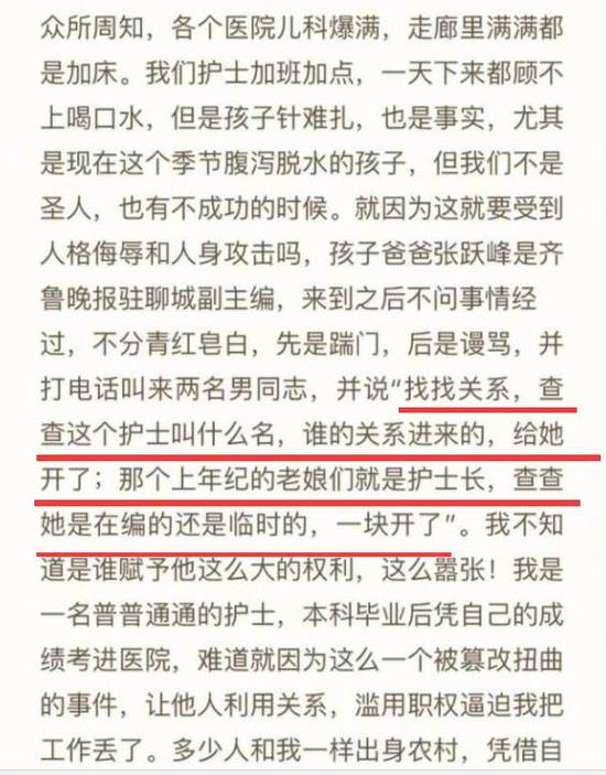 而这,也是为何最终被开除的并不是护士,反而是此前扬言要找关系开除这名护士的张某了。