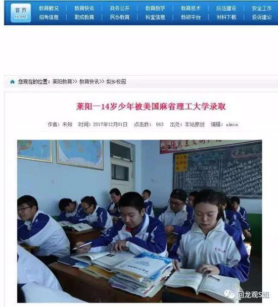 原标题:起底“14岁少年被麻省理工录取” 当地教体局多次强调:宣传需要