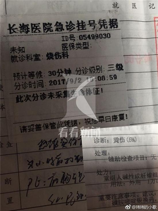 孩子母亲 王女士:“三级烫伤,面积5%,现在水泡都已经消了。”