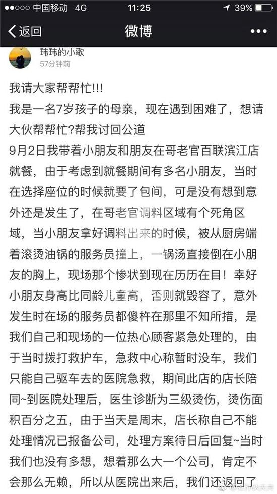 原标题:哥老官火锅烫伤男童 家属认为商家管理有漏洞索赔29万